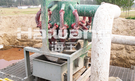 在石油鉆探作業(yè)中,使用旋流器除砂與脫泥,對(duì)鉆井泥漿進(jìn)行凈化。使用Φ250mm(10′′)、Φ300(12′′)旋流器可以脫除 +45μm以上的巖屑,使用Φ100(4′′)、Φ125(5′′)旋流器可以脫除 +15μm以上的巖屑,使用Φ50(2′′)旋流器可以脫除 +10μm巖屑。